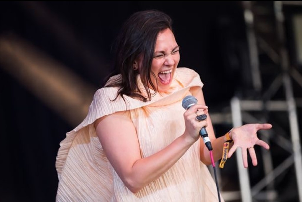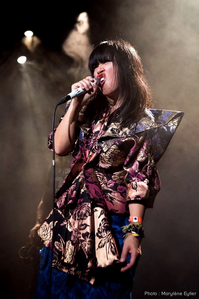 TANYA TAGAQ, wears « INFRAPHYLLUM » dress, Simon Albo Collection Couture, Live at Bonaroo, USA 2016.